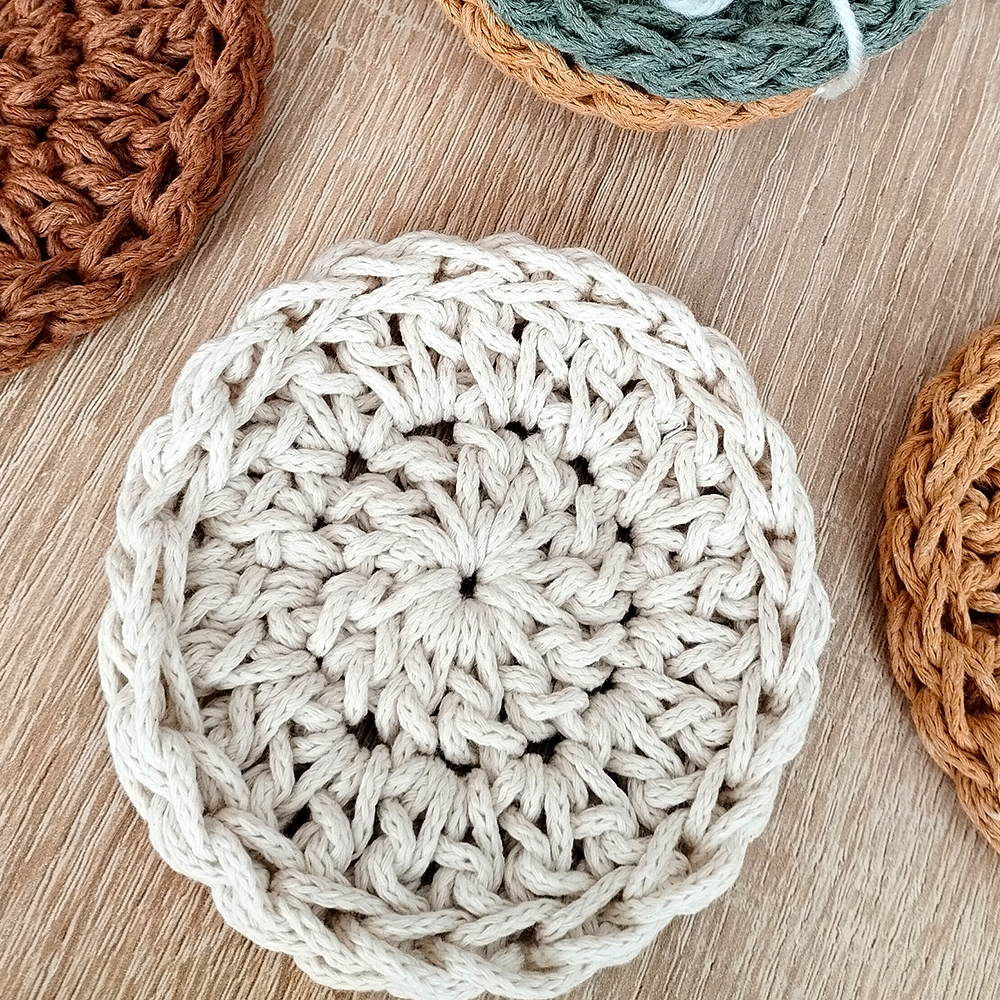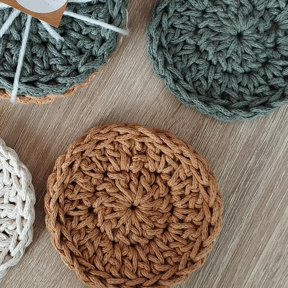 Apportez une touche chaleureuse et artisanale à votre table avec ce set de 4 dessous de verre crochetés à la main.